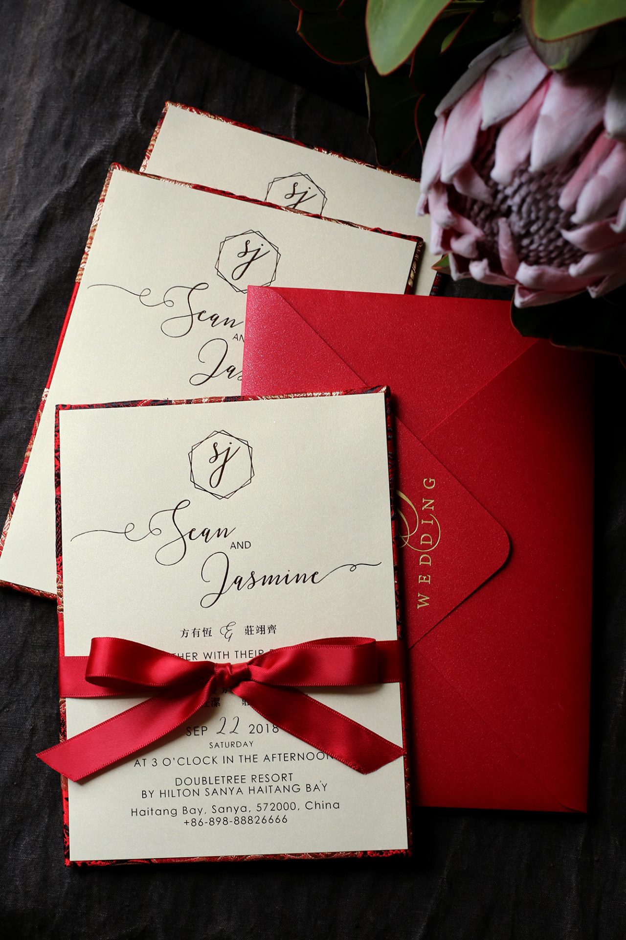 價格一樣包含婚宴資訊燙金、信封、信封燙金(寄件人地址)、信封封口貼紙。