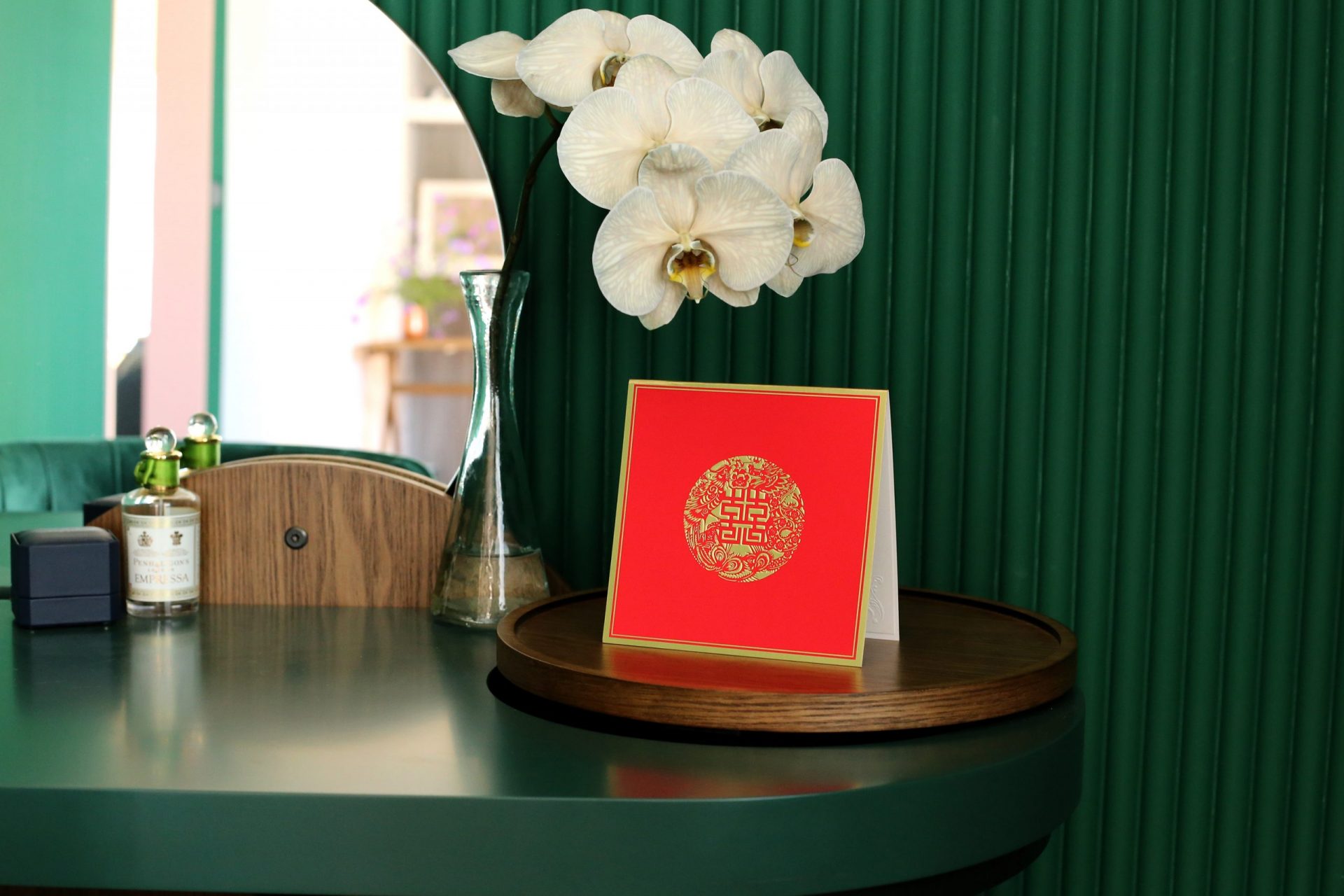 信封上的預設的囍字可以更換嗎?沒問題,我們有提供另外兩個選擇,到時候幫我們寫在訂單備註即可喔(若沒填寫則預設是囍字版)