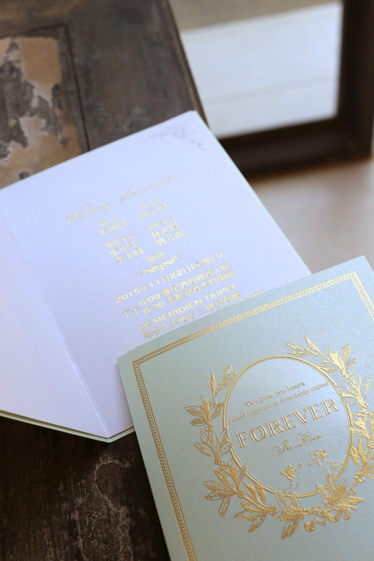 當我收到屬於我倆印製完成的喜帖時,感受到紙質質感相當的好,內文也是精美的燙金,有一種隆重的感覺,可以想見收到的賓客心中的感受也必定是相當喜悅。