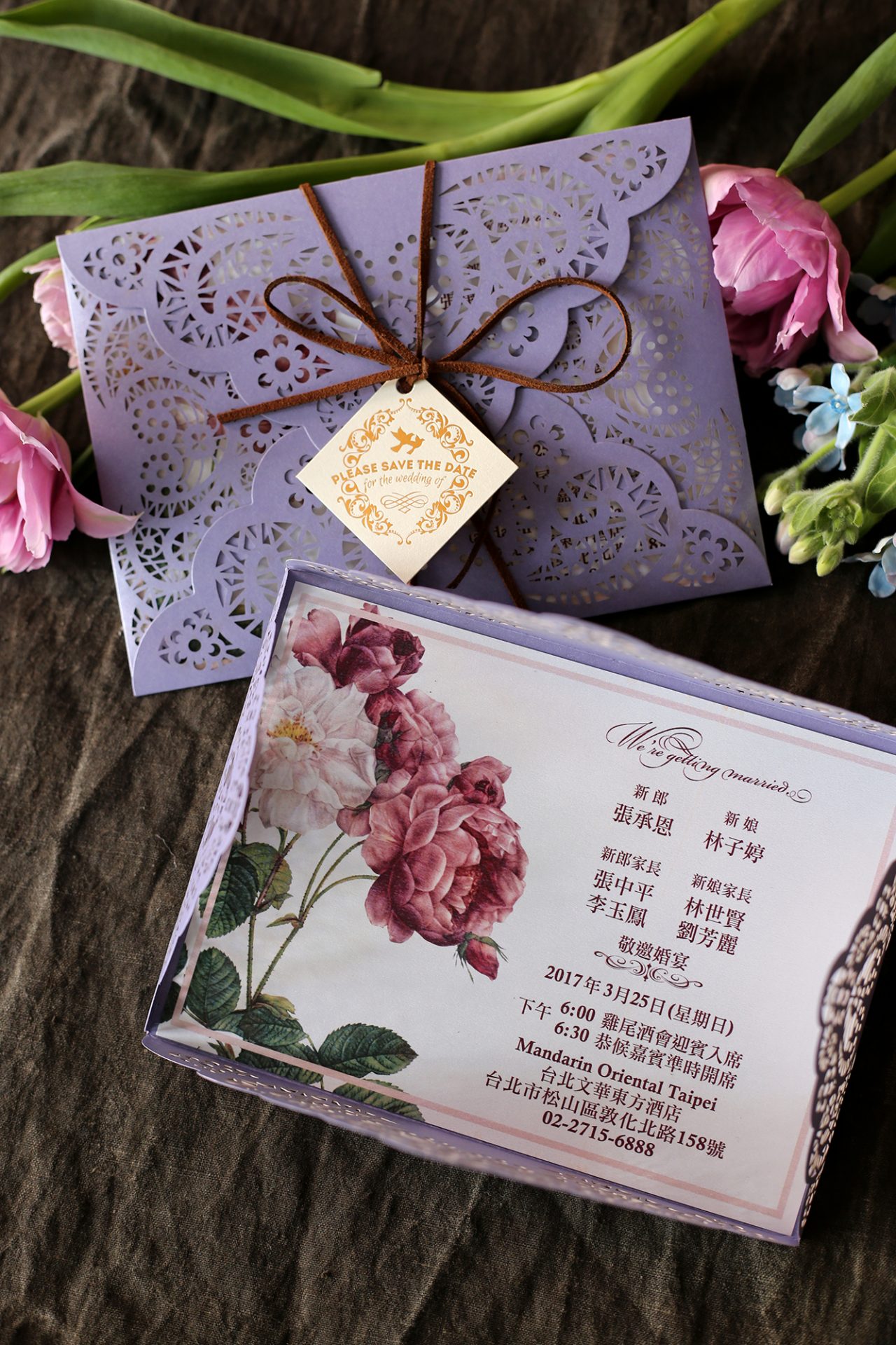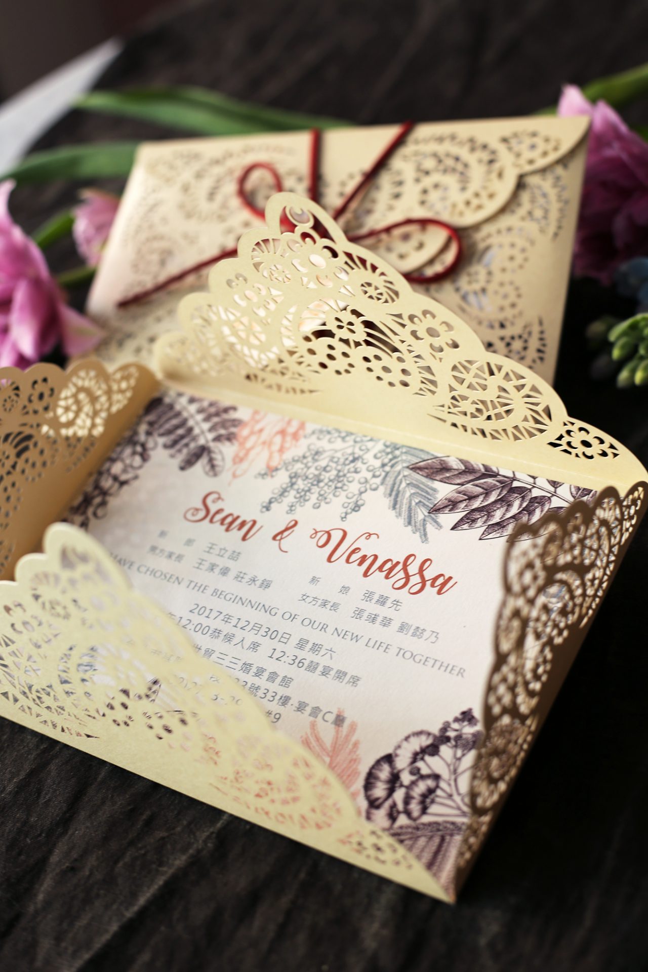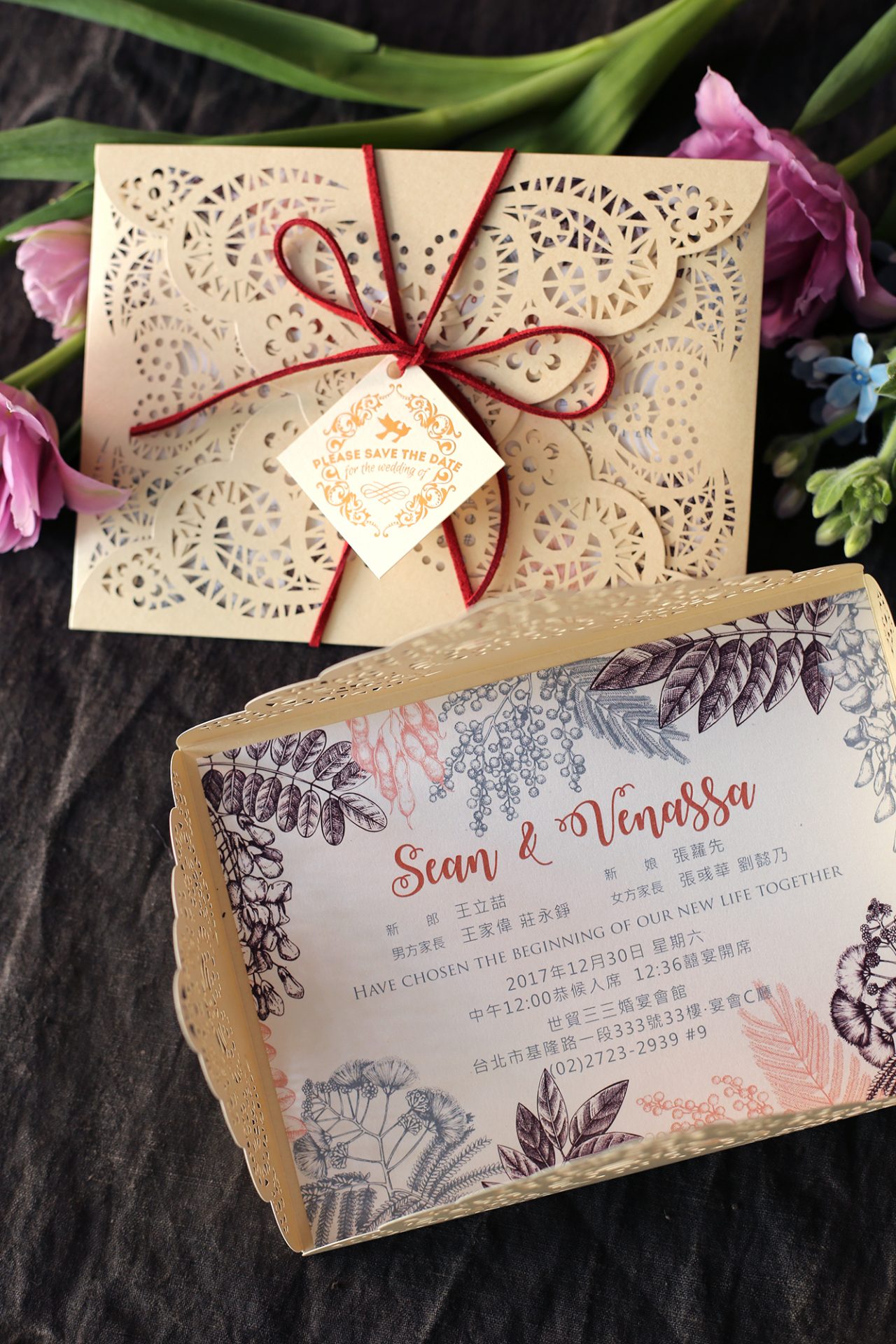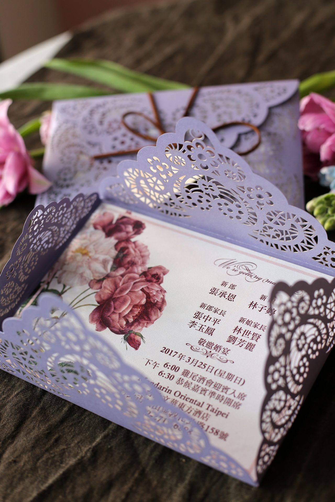 喜帖的雕花精細、質感非一般的傳統喜帖可比擬,拿給老公及家人看的時候,大家都會發出驚嘆聲,因為真的是太美啦!!!