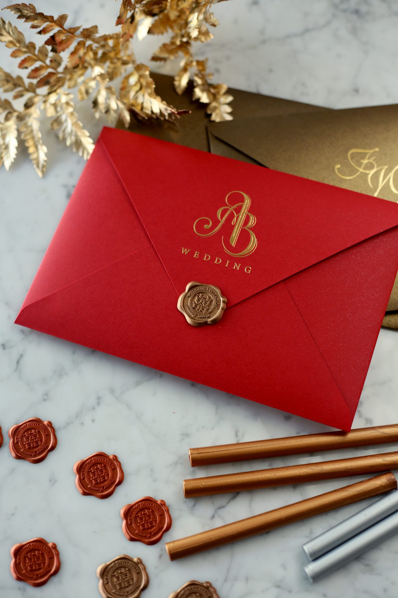 讓您的囍帖更別緻的小點綴 製作完成的囍字封蠟貼 紅金與古銅金雙色,每個封蠟貼最外圍直徑約2.8公分(因形狀不規則,所以只是個概略數字) 背面已有雙面膠可直接使用