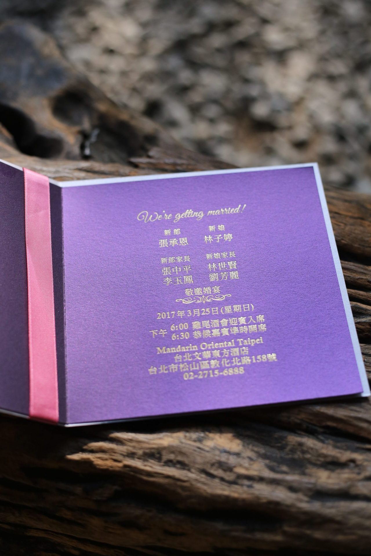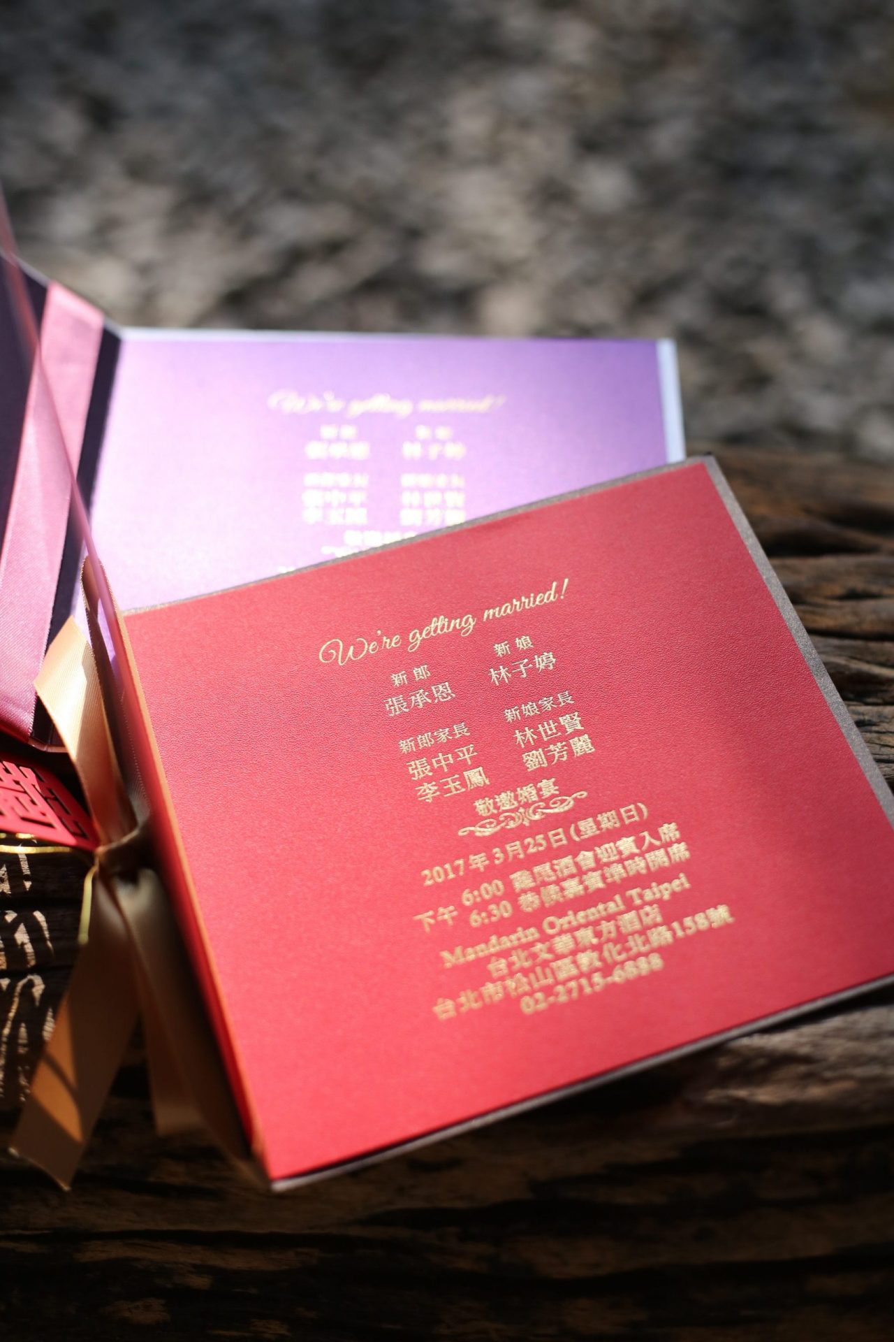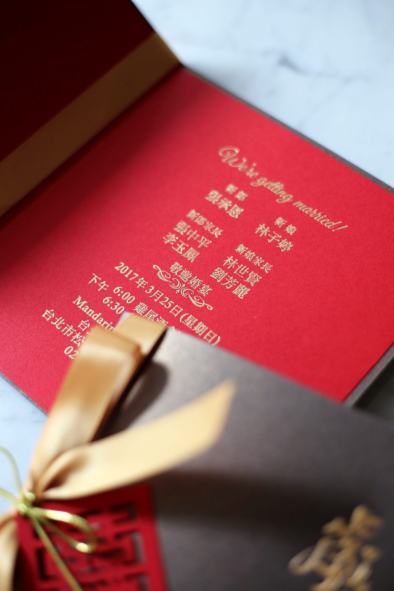 當我收到屬於我倆印製完成的喜帖時,感受到紙質質感相當的好,內文也是精美的燙金,有一種隆重的感覺,可以想見收到的賓客心中的感受也必定是相當喜悅。