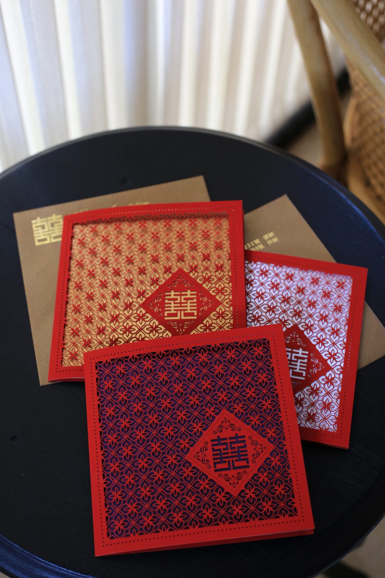 【喜上窗櫺】 當初找喜帖過程花了非常多的時間,因為我想要的是一張美式喜帖⋯但礙於我媽覺得對於長輩會太新潮⋯⋯於是我開始搜集各種樣式,唯獨#奶油喜帖 的質感放進我的名單~ 很快我就看中了這款,其實它有個非常感人的寓意! 官網寫到: 忙進忙出的身影透著窗影搖曳, 你說那累呢?臉上可是藏不住的笑意;吾家有女初長成,你說那樂呢?心裡則是藏不住的心疼。 總要記得家裡窗花的樣子,常常回來探望唷!爸爸心裡想著。 完全就是被這幾行字帶入情感,外卡的紅色絨面紙磅數非常夠,摸起來很溫暖,而紙雕展現精緻的工藝,在不同燈光下呈現出漸層,最細節的是 當燈光打下,會看到窗花的倒影(第二張圖)⋯⋯對於即將離家的我,覺得很美很美。 #buttercard #cofeEverafter #weddinginvitations