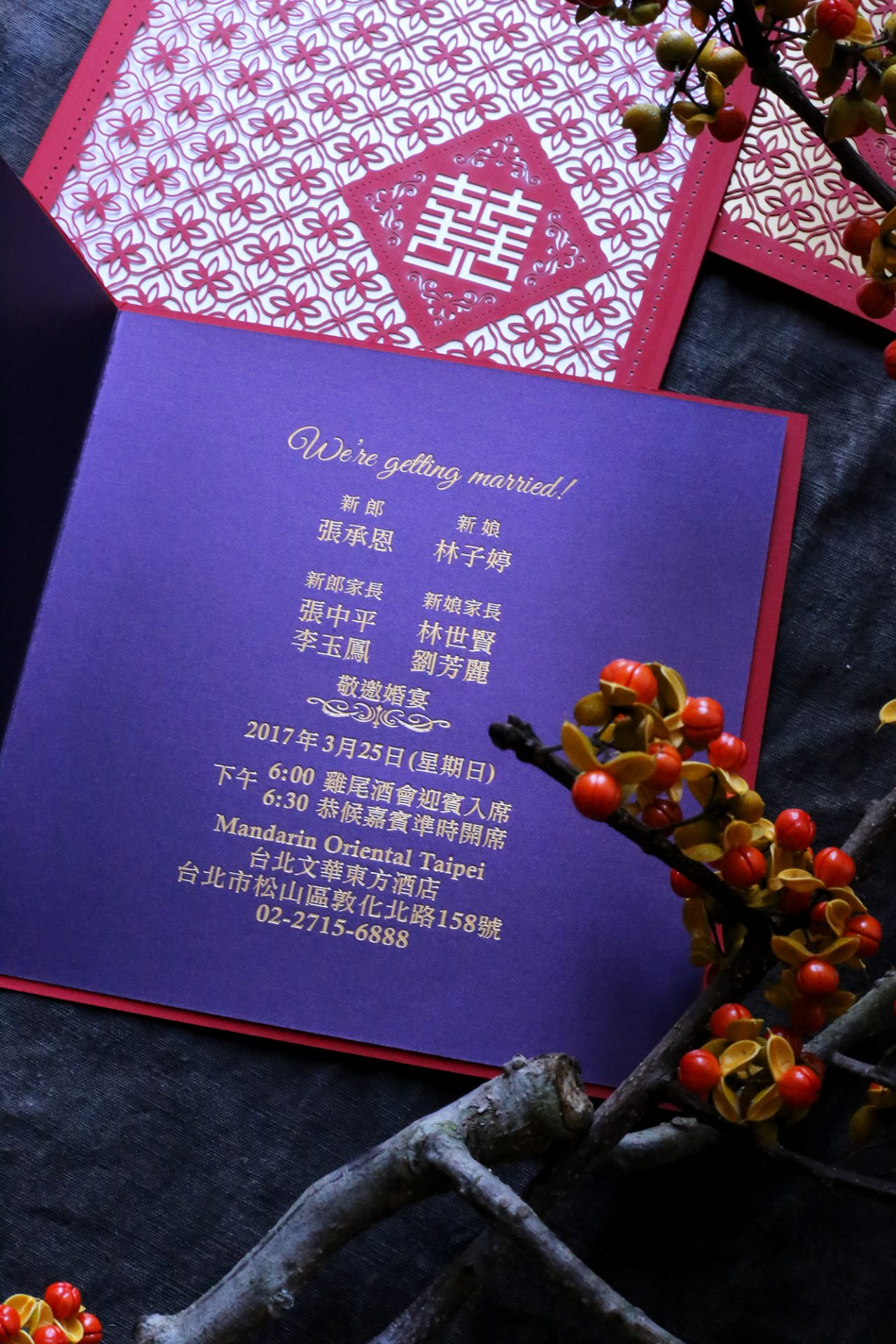 喜帖的雕花精細、質感非一般的傳統喜帖可比擬,拿給老公及家人看的時候,大家都會發出驚嘆聲,因為真的是太美啦!!!