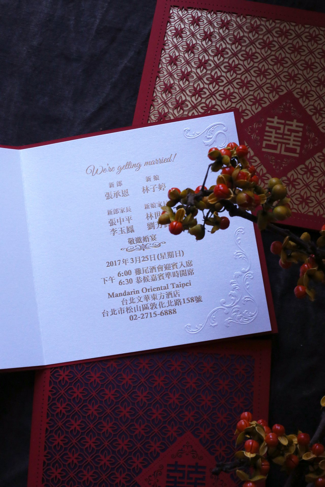 • 價格透明,標價就是實際售價,價格都包含喜帖、燙金、信封、信封燙金。