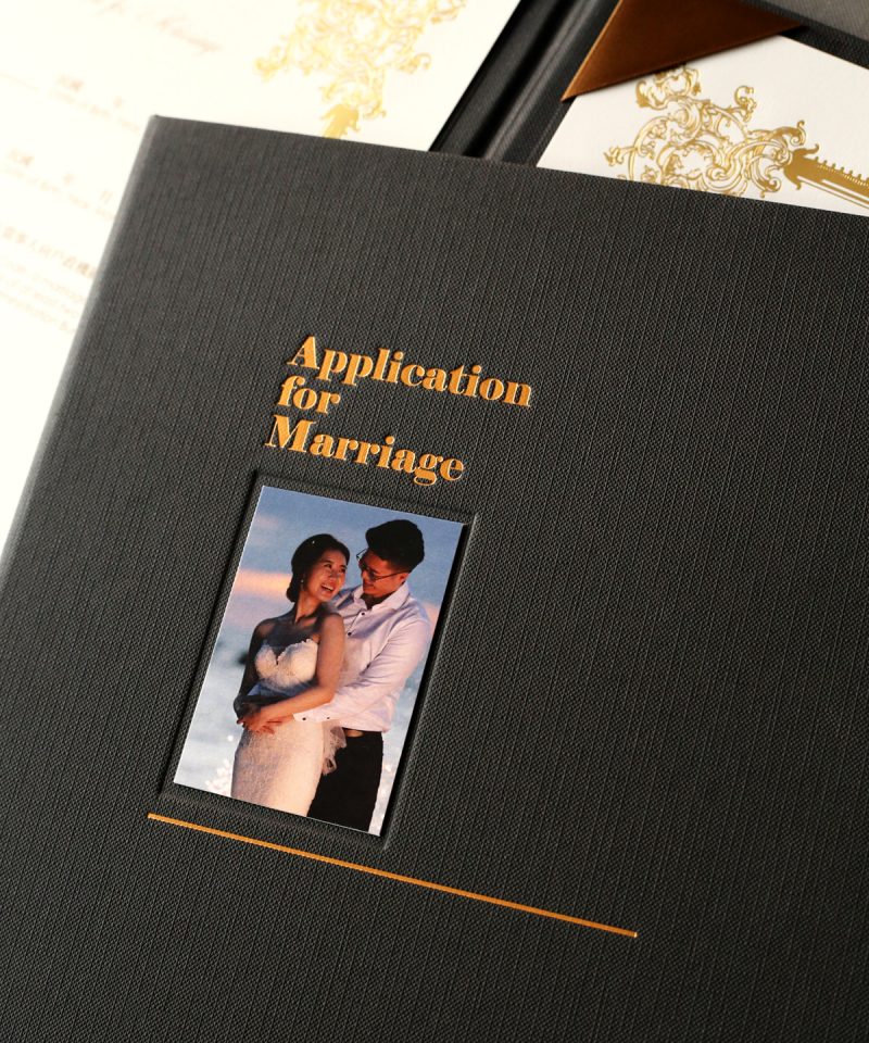 書約紙採用精緻華麗的珠光紙張燙金製作花框,書約夾則是類似精裝書的手感。